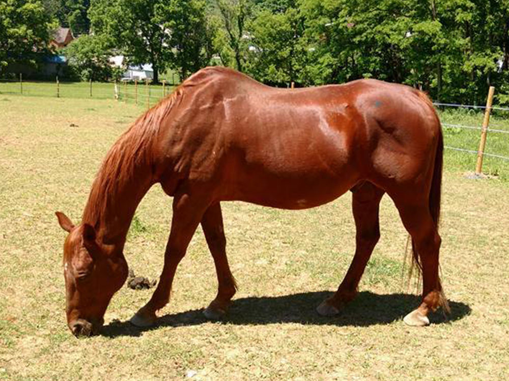 Jazz aka Jazzy aka Mister aka Jazz Man is a 27 year old Sorrel Quarter Horse gelding. Jazz is approximately 15.3 hands high and has as big of personality as he is round. But don’t tell him you think he is fat. Jazz has been with Horses of Hope the longest out of all the members of our herd. He is semi-retired but happy to assist with those "little ones" and all he asks for in return is a lot of love and some hay.